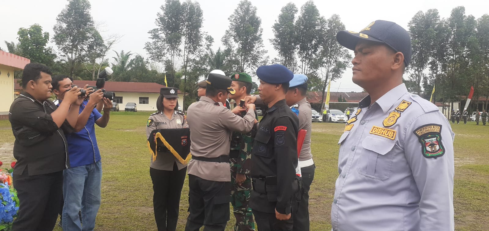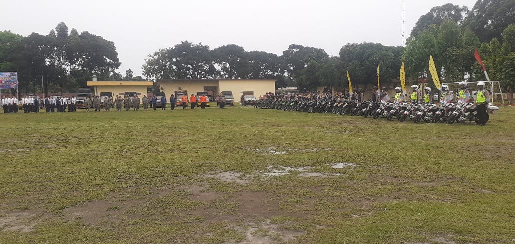 Bawaslu Kota Pematang Siantar menghadiri apel gelar pasukan Operasi Mantap Brata Toba 2023-2024, yang dipimpin Kapolres Pematang Siantar AKBP Yogen Heroes Baruno di lapangan Brimob Kompi II Batalyon B Polda Sumut, Jalan Ahmad Yani, Selasa (17/10/2023).