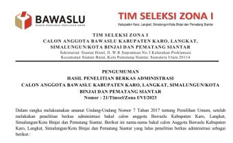 Dalam rangka melaksanakan amanat Undang-Undang Nomor 7 Tahun 2017 tentang Pemilihan Umum, setelah melakukan penelitian berkas administrasi bakal calon anggota Bawaslu Kabupaten Karo, Langkat, Simalungun/Kota Binjai dan Pematang Siantar.