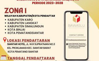 PENGUMUMAN PENDAFTARAN CALON ANGGOTA BAWASLU KABUPATEN KARO, LANGKAT, SIMALUNGUN/KOTA BINJAI DAN PEMATANG SIANTAR SUMATERA UTARANomor : 03/Timsel/Zona I/V/2023