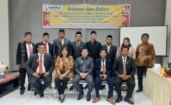 Pematangsiantar - Badan Pengawas Pemilihan Umum (BAWASLU) Kota Pematangsiantar Hadiri Pelantikan Panitia Pemungutan Suara (PPS) Bertempat di Gedung Dharma Wanita/PKK di Jalan Porsea No.03 Kelurahan Teladan Kecamatan Siantar barat.Selasa, (24/01/2023).