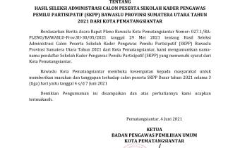 Pematangsiantar, Bawaslu Pematangsiantar - Pendaftaran Sekolah Kader Pengawas Partisipatif Tahun 2021 DIBUKA !!!!