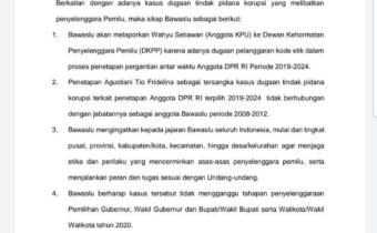 Berkaitan dengan adanya kasus dugaan tindak pidana korupsi yang melibatkan penyelenggara Pemilu, maka sikap Bawaslu sebagai berikut: