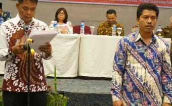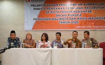 Pematangsiantar - Bawaslu Kota Pematangsiantar melantik 24 orang anggota Panwas Kecamatan untuk Pemilihan Wali Kota dan Wakil Wali Kota Pematangsiantar Tahun 2020 di Horison Hotel, Pematangsiantar pada Senin 23 Desember 2019.