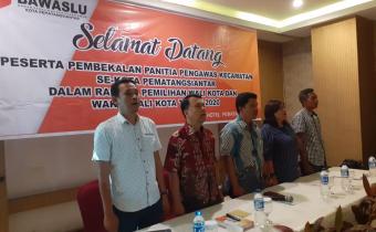Pematangsiantar - Bawaslu Kota Pematangsiantar melakukan pembekalan terhadap Panitia Pengawas Kecamatan se-Kota Pematangsiantar dalam rangka Pemilihan Wali Kota dan Wakil Wali Kota tahun 2020 yang diselengarakan di Hotel Horison, Jalan Medan, Kota Pematangsiantar, Jumat 27 Desemb