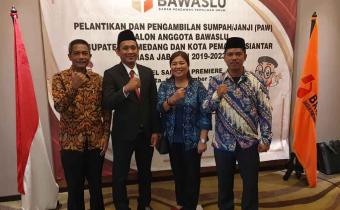Pematangsiantar-Komisioner Bawaslu Kota Pematangsiantar kini lengkap berjumlah tiga orang, setelah sempat beberapa waktu satu komisioner kosong. Pelantikan dan pengambilan sumpah jabatan dilakukan di Jakarta, Jumat (13/9/2019).