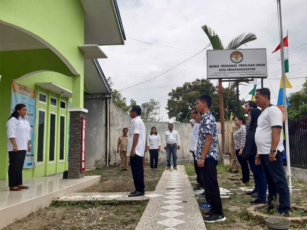 Bertindak sebagai Pembina Upacara, anggota Bawaslu Kota Pematangsiantar, Junita Lila Sinaga. Peserta upacara adalah para staf PNS dan non PNS Bawaslu Kota Pematangsiantar.