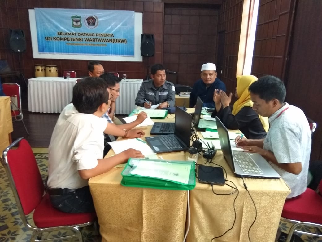 Pematangsiantar - Ketua Bawaslu Kota Pematangsiantar, Sumatera Utara, Muhammad Syahfii Siregar menjadi pembicara dalam kegiatan Uji Kompetensi Wartawan (UKW) yang digelar Pemko dan PWI Pematangsiantar di Siantar Hotel Jalan WR Supratman, Kota Pematangsiantar, Senin (25/11/2019).