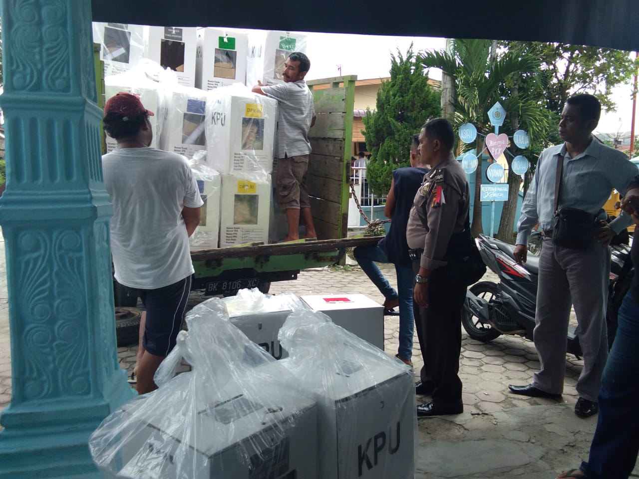 Pada Minggu (28/4/2019), Kecamatan Siantar Barat juga sudah mengembalikan logistik ke gudang KPU di Jalan Medan.