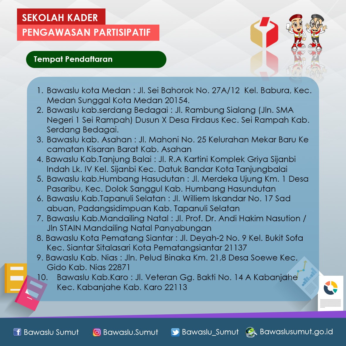 Untuk yang berdomisili di Kota Pematangsiantar bisa mengantarkan berkas pendaftaran di Kantor Bawaslu Kota Pematangsiantar. Untuk seputar informasi lebih lanjut bisa menghubungi Sdr. Ahmad Rizki Sitio (0853-6288-8235).
