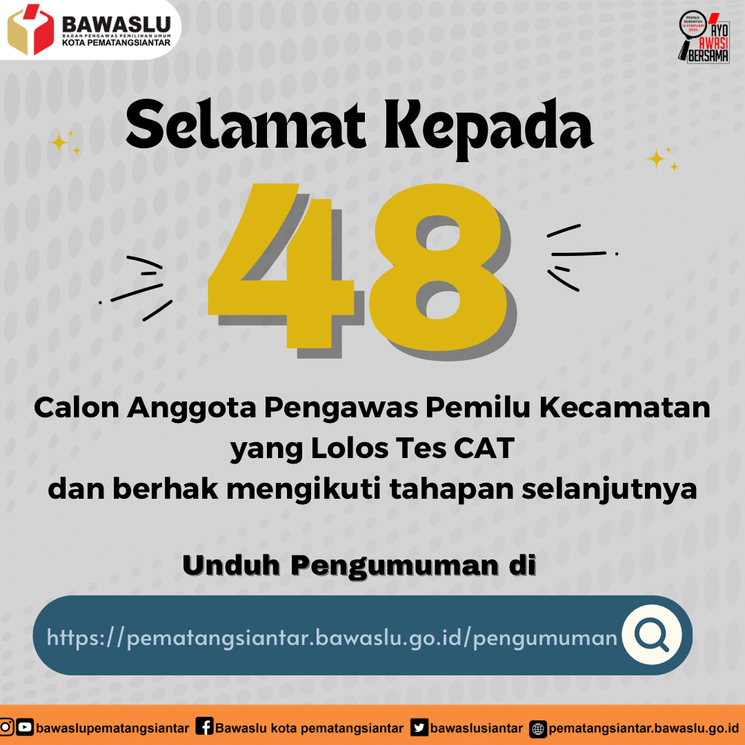 PENGUMUMAN HASIL TES TERTULIS PANWASCAM SE-KOTA PEMATANG SIANTAR PEMILU TAHUN 2024