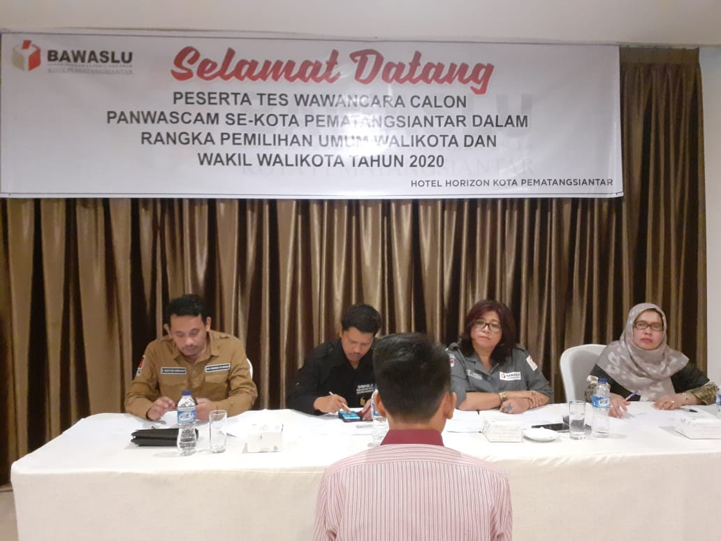 Pematangsiantar - Tes Wawancara terhadap calon Panwascam Pemilihan Wali Kota dan Wakil Wali Kota Pematangsiantar digelar pada Senin 16 Desember 2019 di Hotel Horison, Jalan Medan, Kota Pematangsiantar.