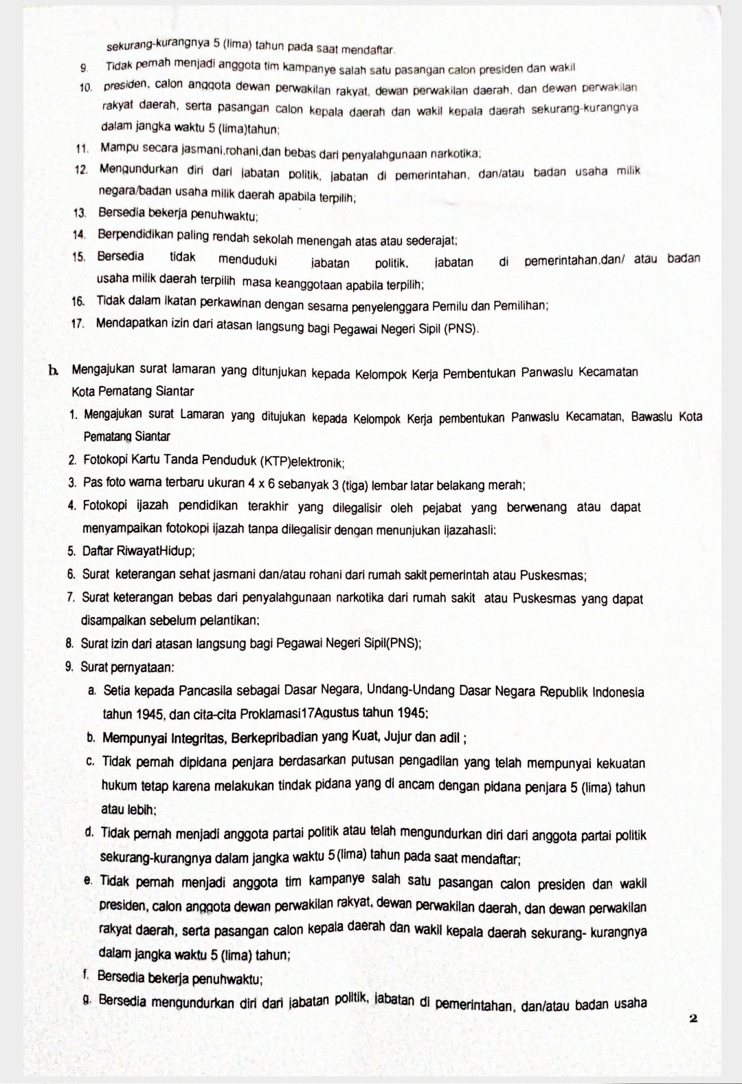 "Rekrutmen Panwascam sebagai salah satu bentuk partisipasi masyarakat dan bagian dari kepedulian terhadap demokrasi. Antusiasme masyarakat meningkat, hal ini ditandai dari 154 pendaftar dari 8 kecamatan di Kota Pematang Siantar. 154 pendaftar terdiri dari 112 pria dan 42 perempuan," ungkapnya saat dikonfirmasi, Sehingga ada 4 kecamatan yang tidak memenuhi keterwakilan perempuan 30 persen. Sesuai dengan Peraturan Bawaslu nomor 8 tahun 2019 atas kewenangan maka di lakukan perpanjangan pendaftar dengan mengeluarkan Pengumuman Perpanjangan Pendaftaran Calon Anggota Panitia Pengawas pemilihan umum kecamatan Nomor : 002/KP.01.00/Pokja/K.SU-30/10/2022 untuk kecamatan Siantar utara, Kecamatan Siantar Marihat, Kecamatan Siantar Sitalasari dan Kecamatan Siantar Martoba dan dapat di lihat Pengumuman di kantor kecamatan tersebut.