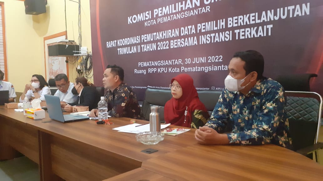 Dalam rapat triwulan II Daniel MD Sibarani Menjelaskan jumlah Sementara data Pemilih untuk kota Pematangsiantar sebanyak 185.249 Pemilih yg tersebar di 8 (delapan) kecamatan. Yg terdiri dari laki-laki sebanyak 89.350 dan Perempuan sebanyak 95.899. dan KPU dalam waktu dekat akan melalukan Sosialisasi dan Pemutahiran data Pemilih berkelanjutan mengunakan aplikasi Mobile lindungihakmu, sesuai dengan surat edaran KPU RI Nomor 18 Tahun 2022 tentang petunjuk teknis pengunaan aplikasi mobile Lindungihakmu.
