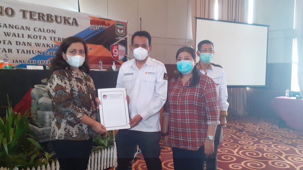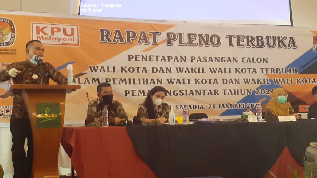 Pematangsiantar, Badan Pengawas Pemilu (Bawaslu) Kota Pematangsiantar- Komisi Pemilihan Umum Kota Pematangsiantar Melaksanakan Rapat Pleno Terbuka Penetapan Pasangan Calon Walikota Dan Wakil Walikota Pada Pemilihan Kepala daerah Tahun 2020 yang dihadiri Pimpinan dan Anggota Bawaslu Kota Pematangsiantar di Sapadia hotel,Kamis (21/1/2021).