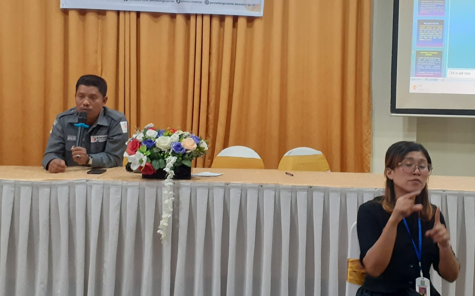 Koodinator Hukum, Pencegahan,Parmas dan Humas (HP2H) Muhammad Syafi'i Siregar juga Memberikan Materi dengan Judul " Hak Politik Penyandang Disabilitas Dalam Pelaksanaan Pemilu Sebagai Wujud dan Implementasi Demokrasi". Dalam Materi tersebut Menerangkan apa itu Bawaslu, apa Tugas- Tugas Bawaslu dan juga Menerangkan apa saja yang Hak Penyandang Disabilitas di Pemilihan serentak di tahun 2024.
